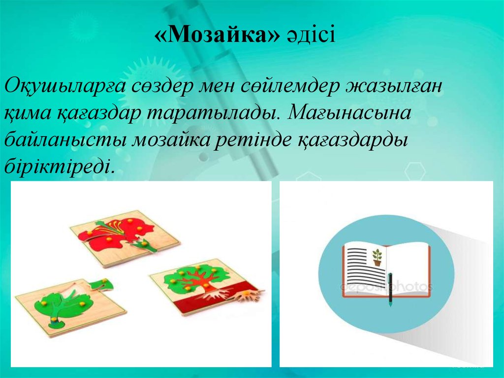 «Мозайка» әдісіОқушыларға сөздер мен сөйлемдер жазылған