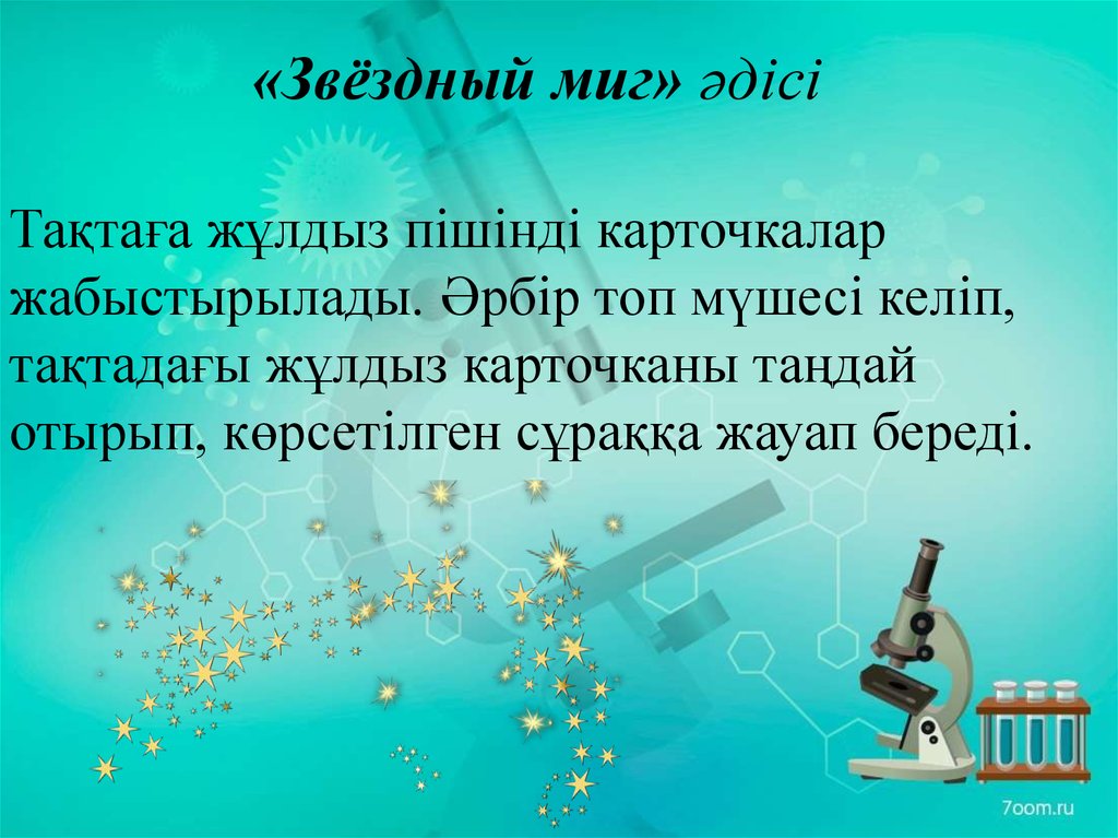 «Звёздный миг» әдісіТақтаға жұлдыз пішінді карточкалар