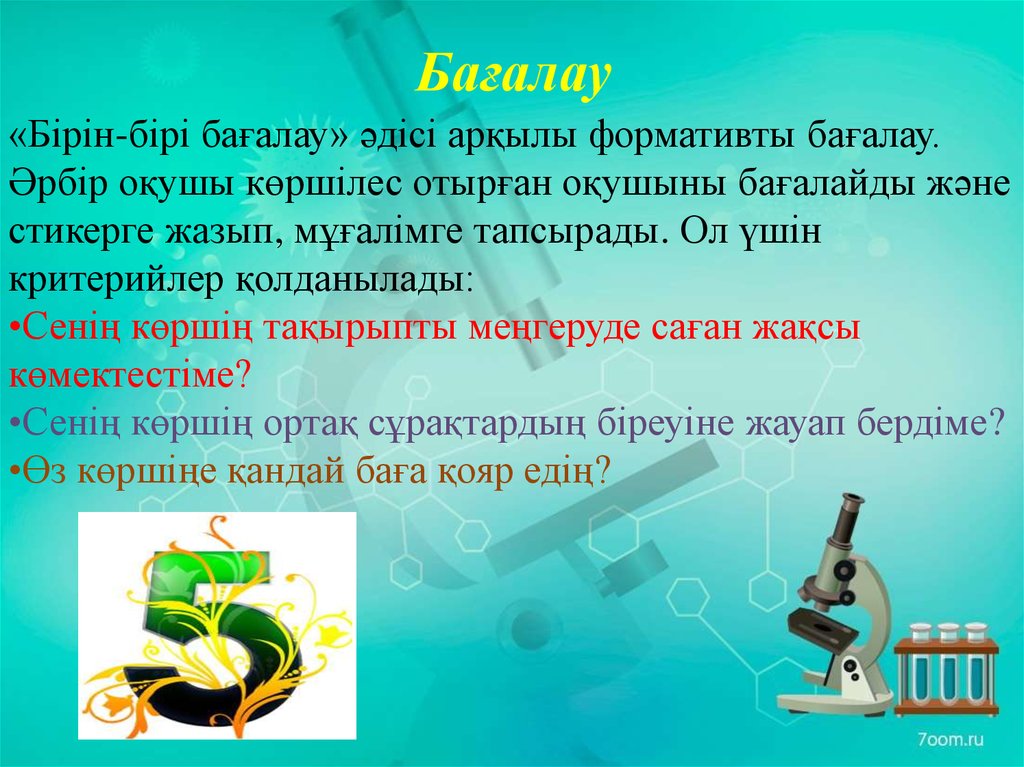 Бағалау«Бірін-бірі бағалау» әдісі арқылы формативты бағалау.