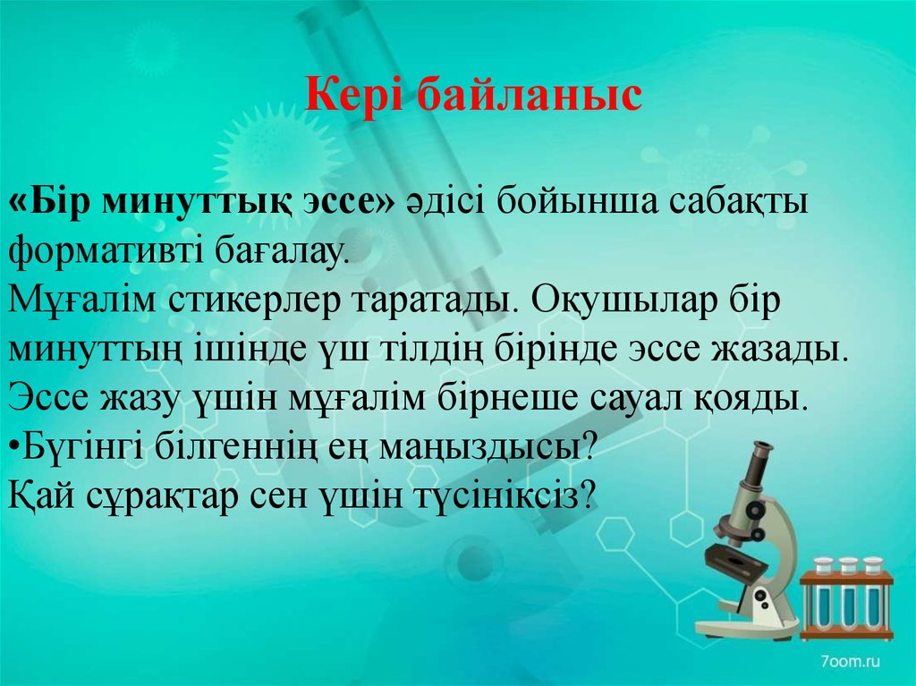 Кері байланыс«Бір минуттық эссе» әдісі бойынша сабақты