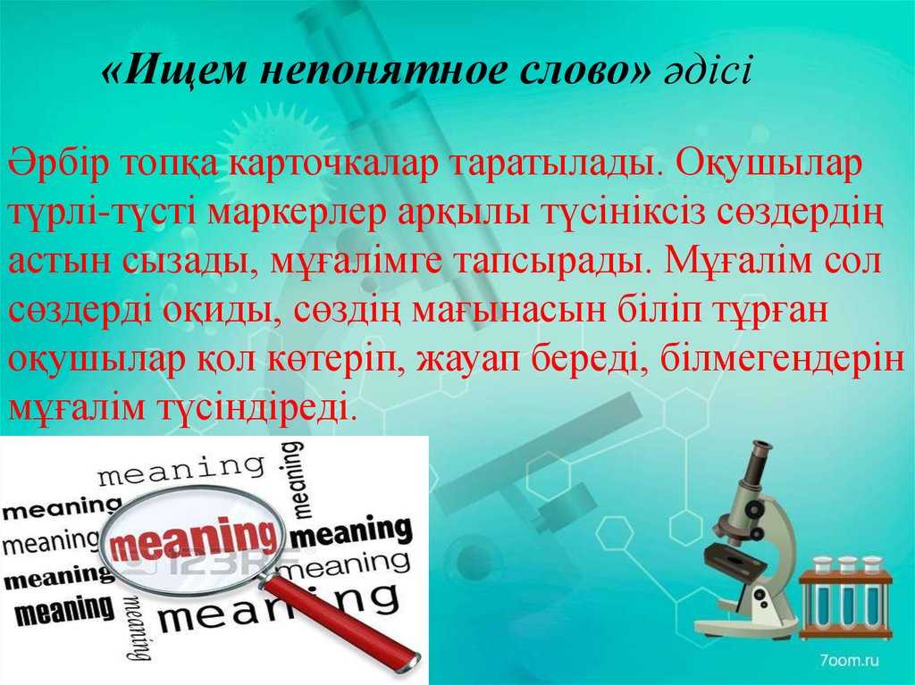 «Ищем непонятное слово» әдісіӘрбір топқа карточкалар таратылады. Оқушылар