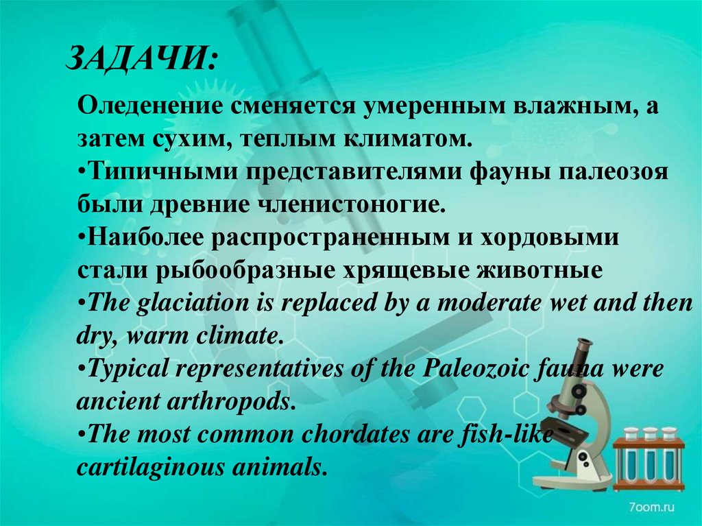 ЗАДАЧИ:Оледенение сменяется умеренным влажным, а