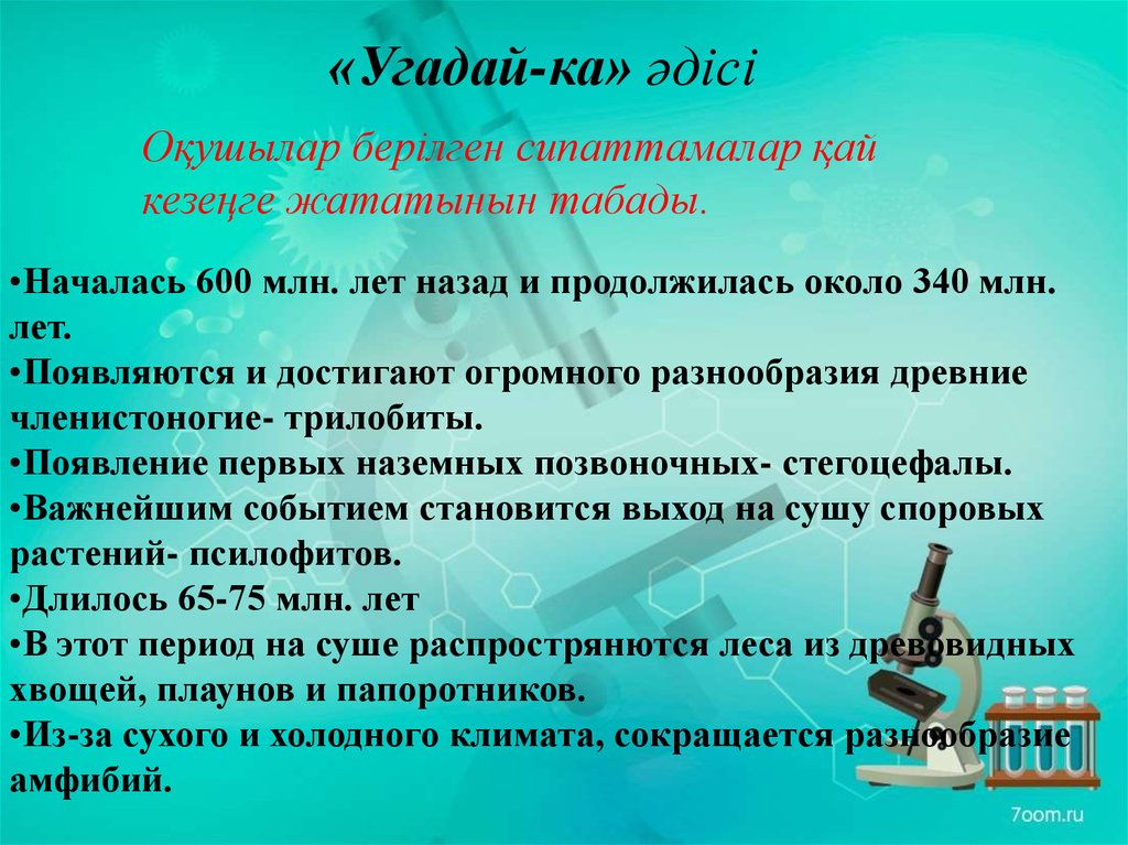 Үйге тапсырма§ 50. Палеозой заманында тіршіліктің