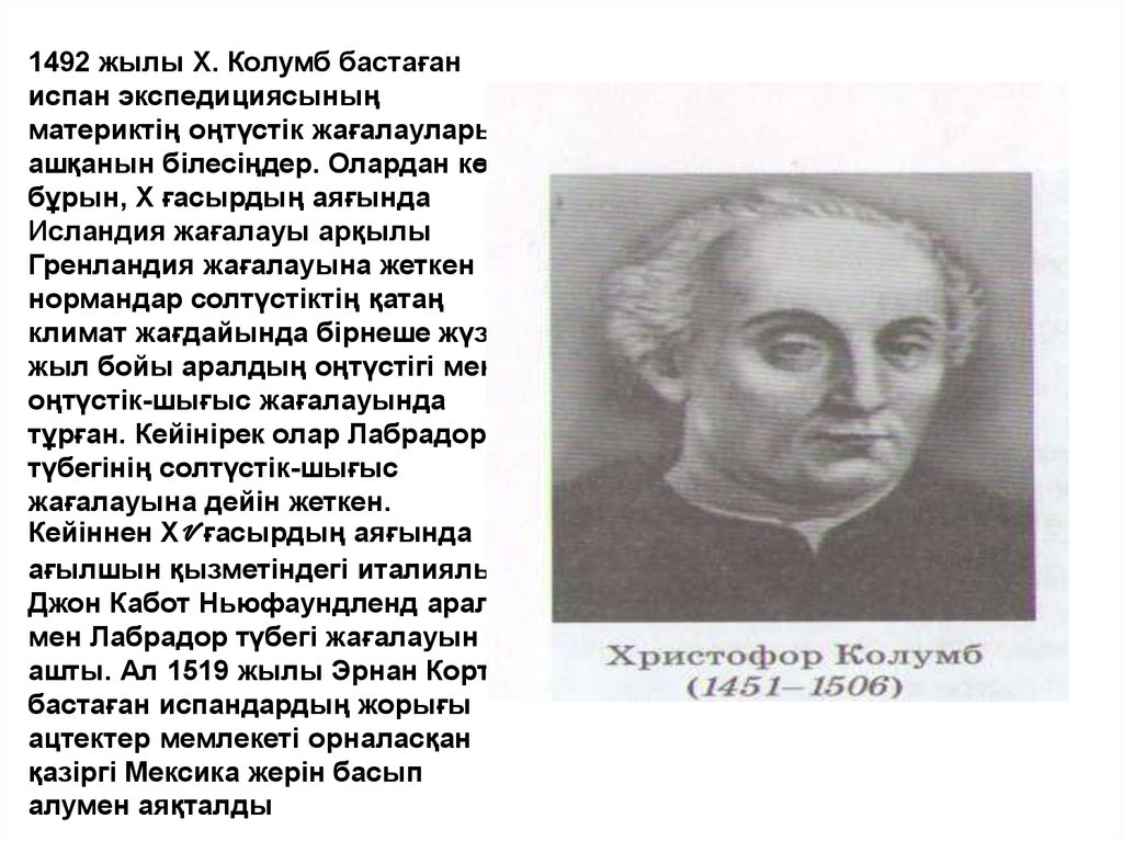 1492 жылы Х. Колумб бастағаниспан экспедициясының