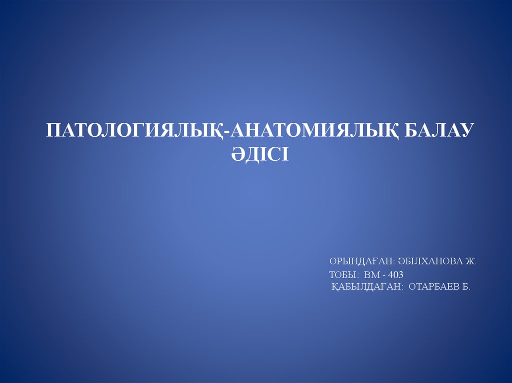 1. патологиялық-анатомиялық балау әдісі орындаған: әбілханова Ж. тобы: ВМ - 403 қабылдаған: ОТАРБАЕВ б.