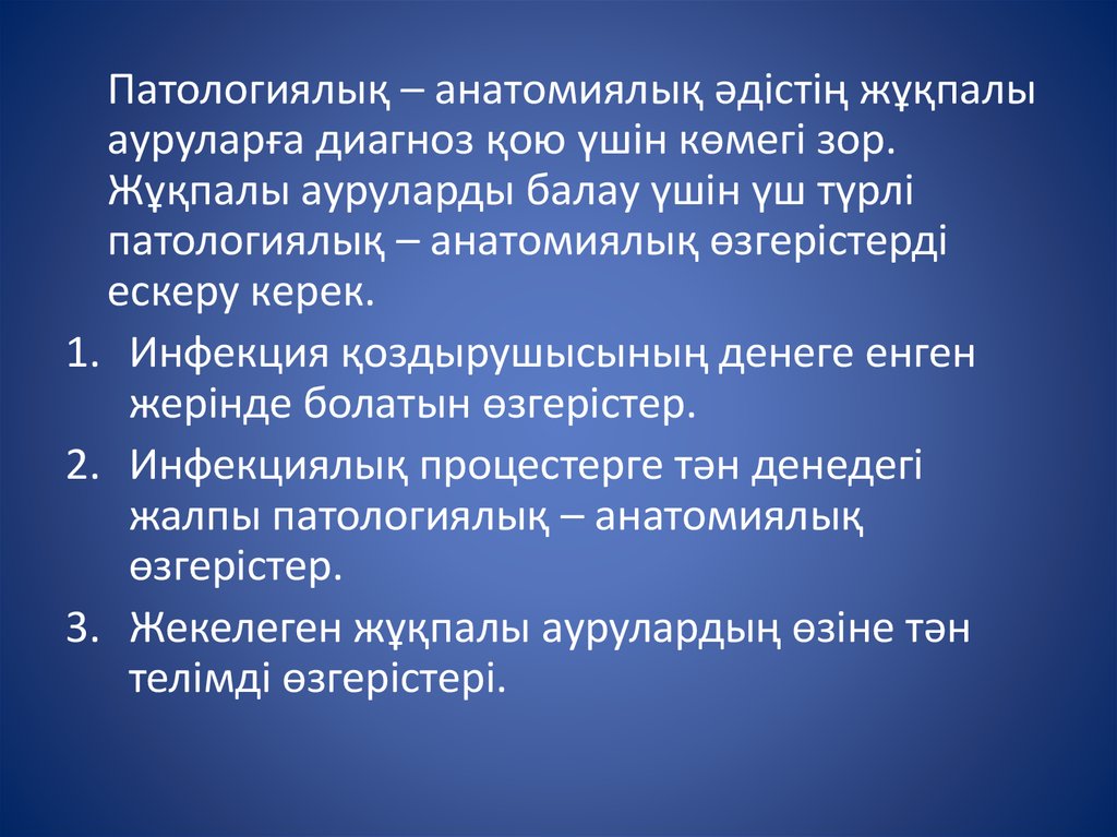 Патологиялық – анатомиялық әдістің жұқпалыауруларға диагноз қою үшін көмегі зор.