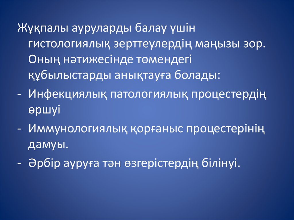 Жұқпалы ауруларды балау үшінгистологиялық зерттеулердің маңызы зор.