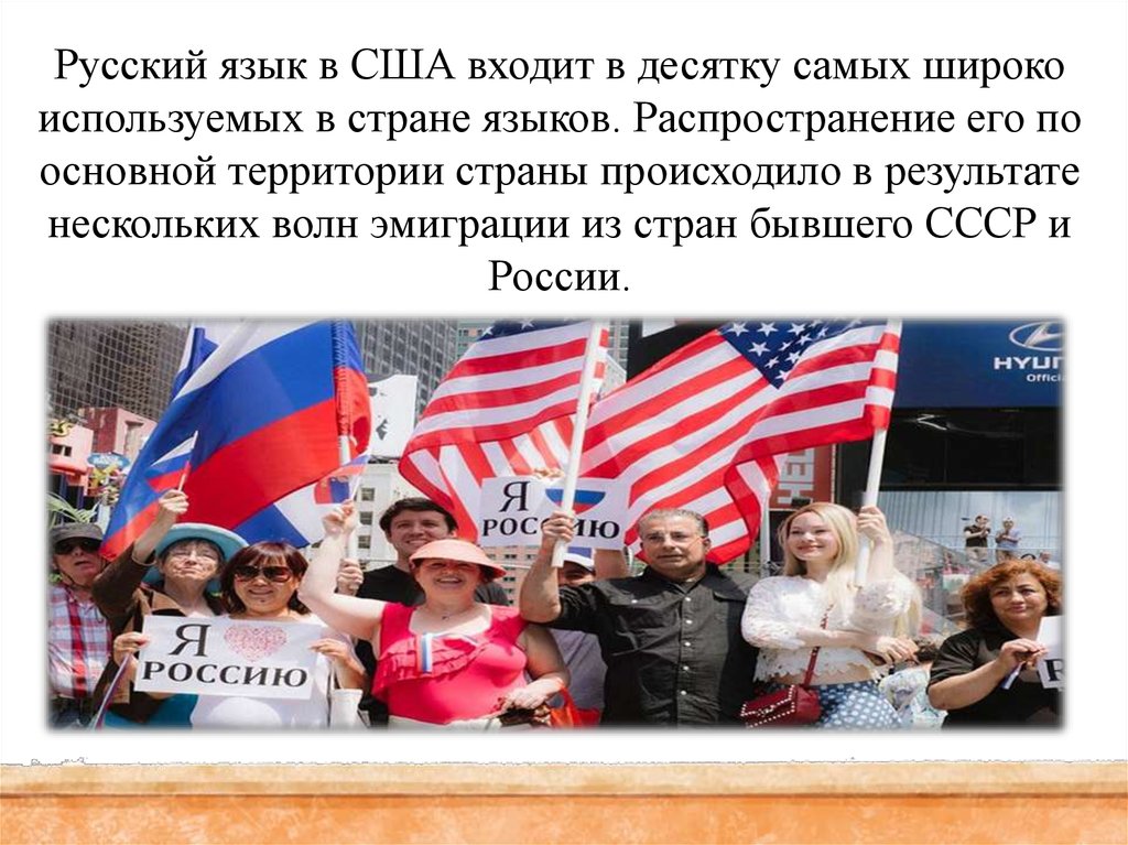 Русский язык в США входит в десятку самых широкоиспользуемых в стране языков. Распространение его по