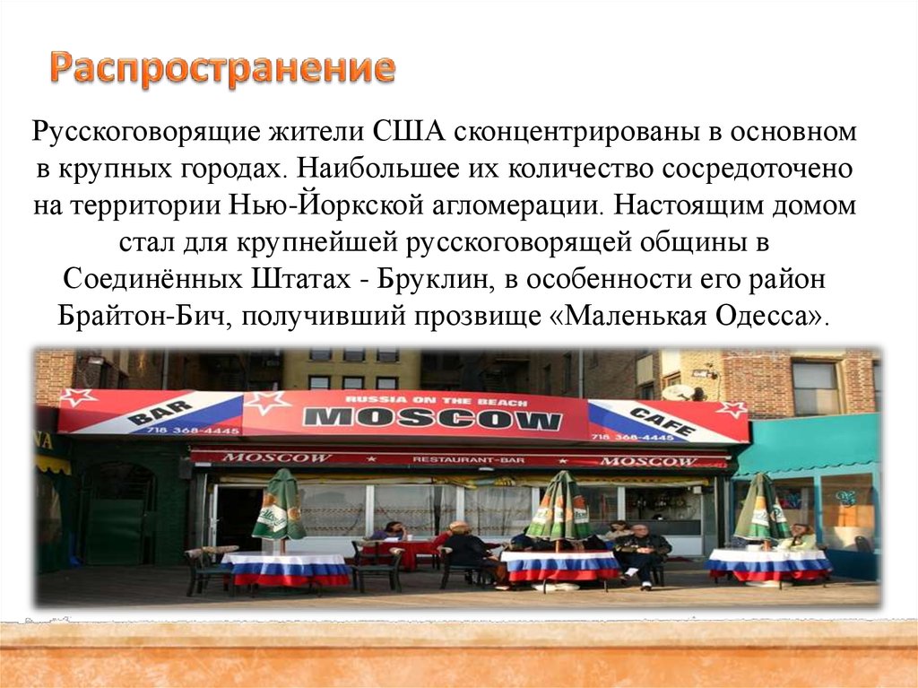 Русскоговорящие жители США сконцентрированы в основномв крупных городах. Наибольшее их количество сосредоточено