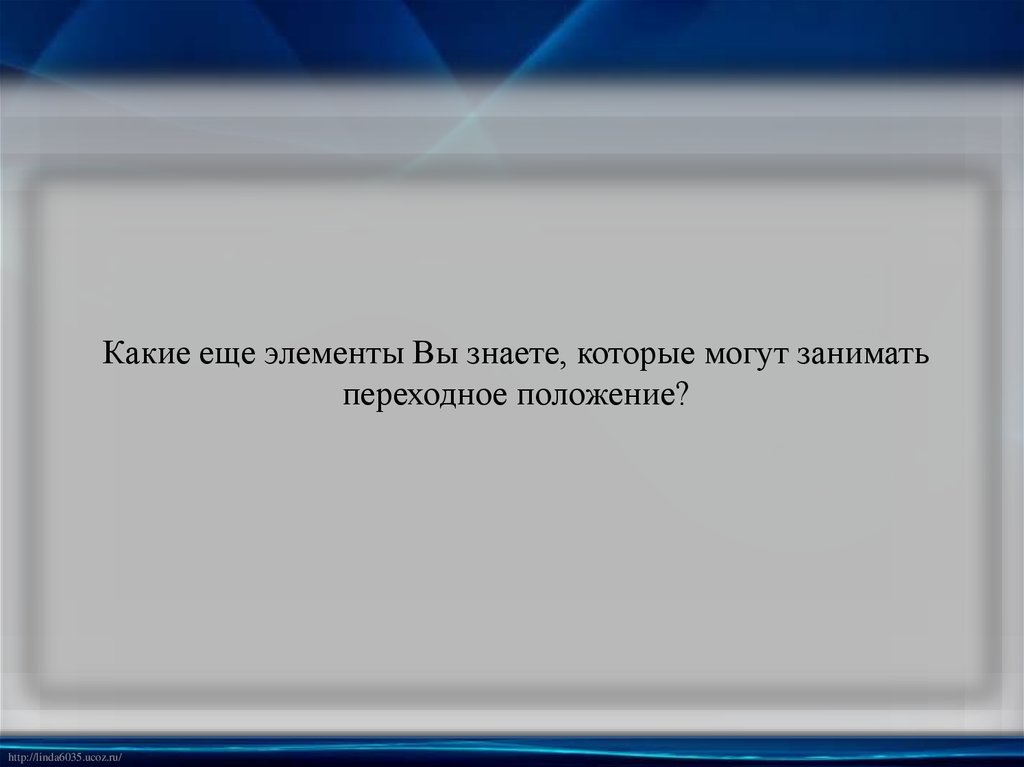 Какие еще элементы Вы знаете, которые могут заниматьпереходное положение?
