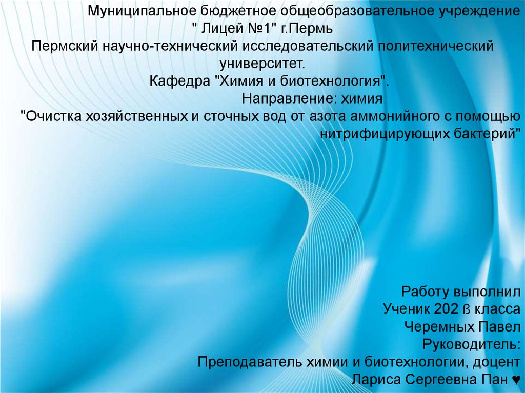 Муниципальное бюджетное общеобразовательное учреждение" Лицей №1" г.Пермь