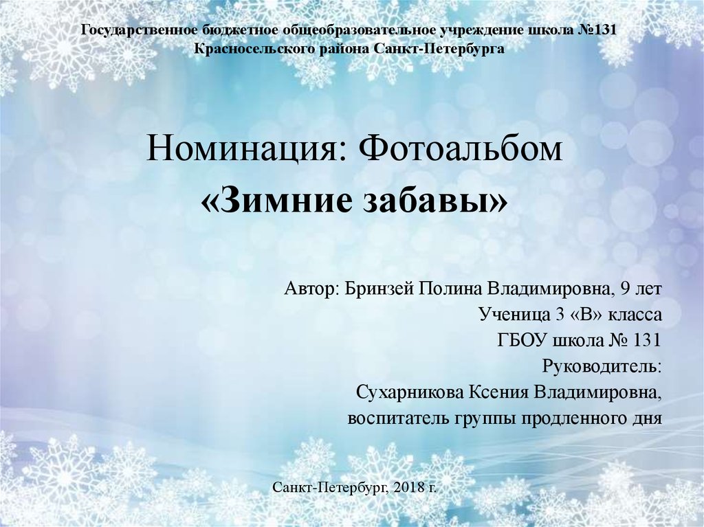1. Государственное бюджетное общеобразовательное учреждение школа №131 Красносельского района Санкт-Петербурга