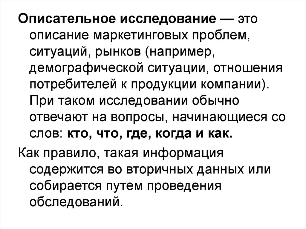 Кабинетные исследования дают представления о следующих