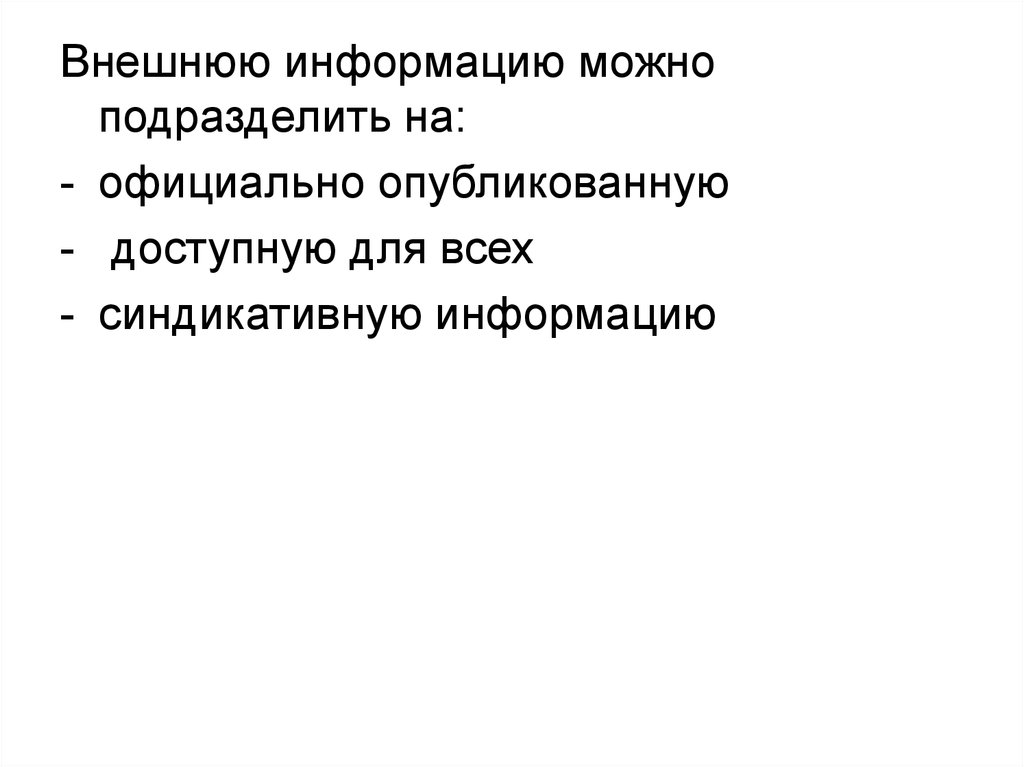 Внешнюю информацию можноподразделить на: