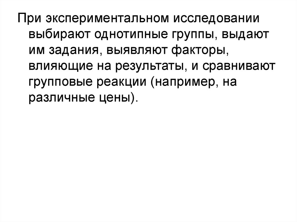 При экспериментальном исследованиивыбирают однотипные группы, выдают