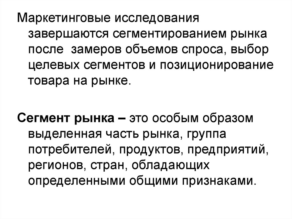 Маркетинговые исследованиязавершаются сегментированием рынка