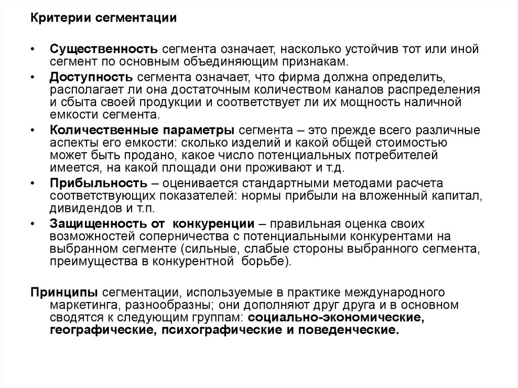 Критерии сегментацииСущественность сегмента означает, насколько устойчив тот или иной
