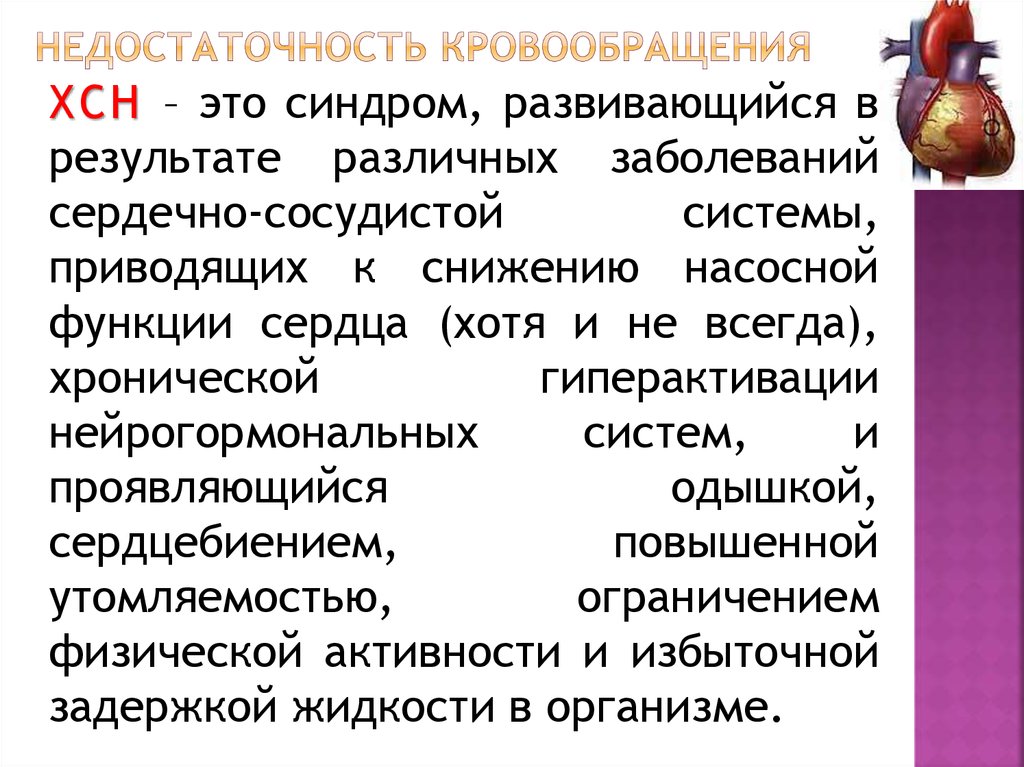 ХСН – это синдром, развивающийся врезультате различных заболеваний