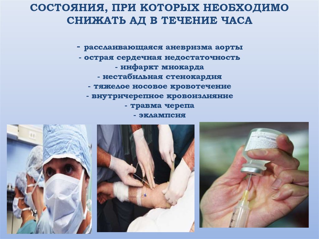 СОСТОЯНИЯ, ПРИ КОТОРЫХ НЕОБХОДИМОСНИЖАТЬ АД В ТЕЧЕНИЕ ЧАСА