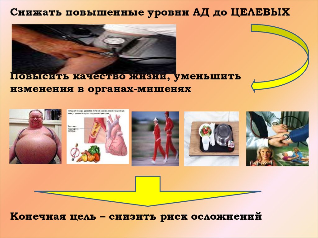 Снижать повышенные уровни АД до ЦЕЛЕВЫХПовысить качество жизни, уменьшить