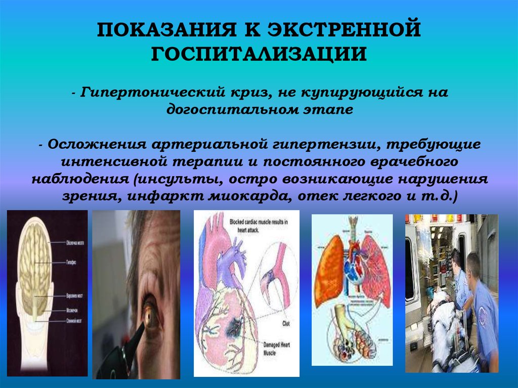 зрения, инфаркт миокарда, отек легкого и т.д.)