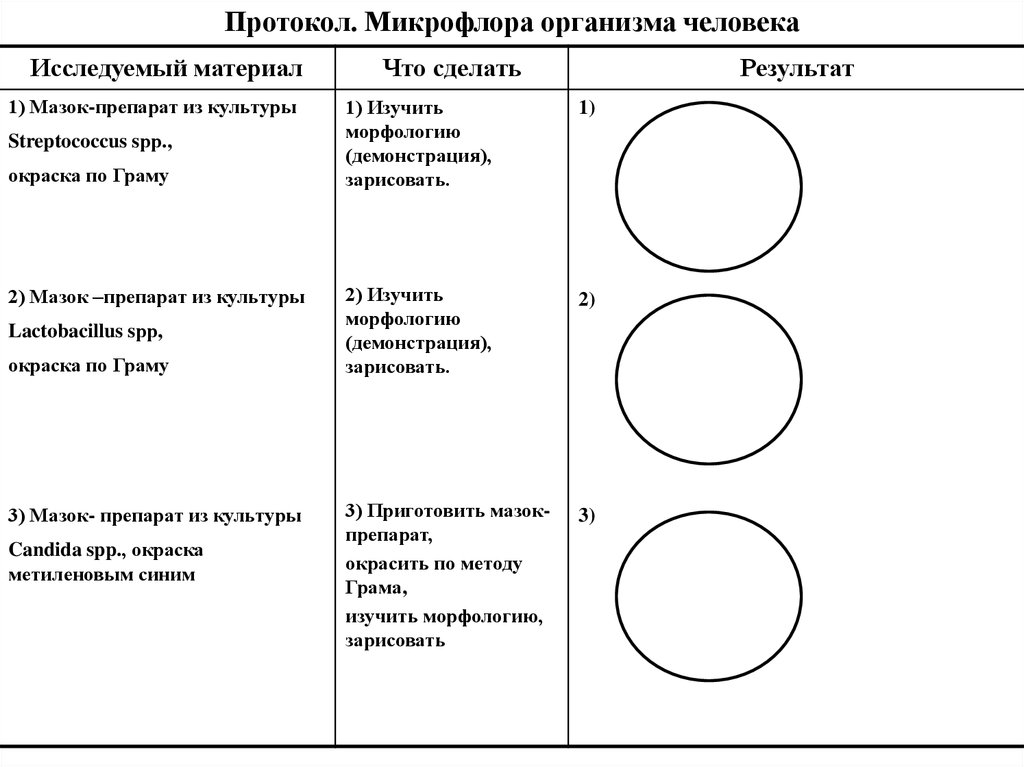 Протокол. Микрофлора организма человекаИсследуемый материал