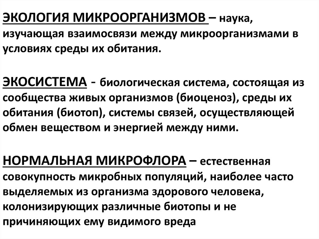 ЭКОЛОГИЯ МИКРООРГАНИЗМОВ – наука,изучающая взаимосвязи между микроорганизмами в