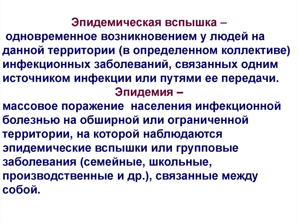 Эпидемическая вспышка –одновременное возникновением у людей на
