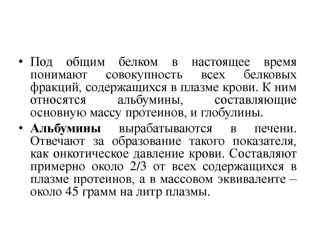 • Под общим белком в настоящее времяпонимают совокупность всех белковых