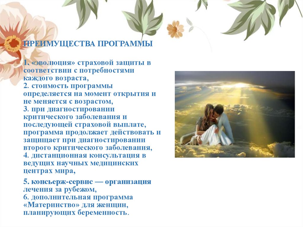 ПРЕИМУЩЕСТВА ПРОГРАММЫ1. «эволюция» страховой защиты в
