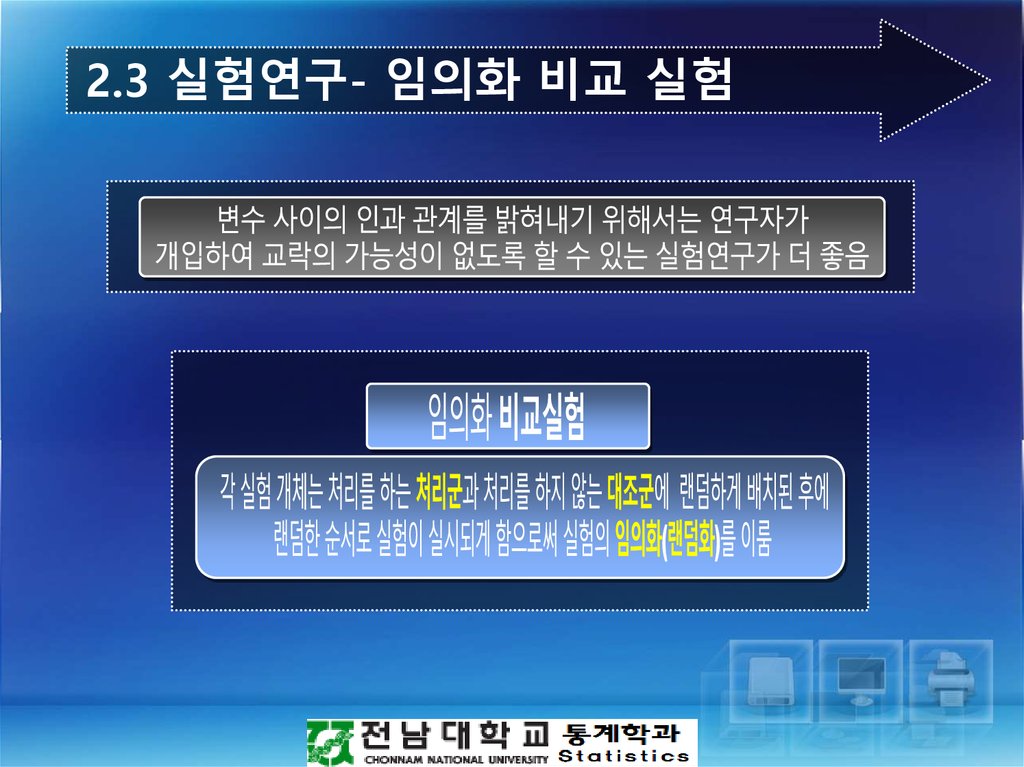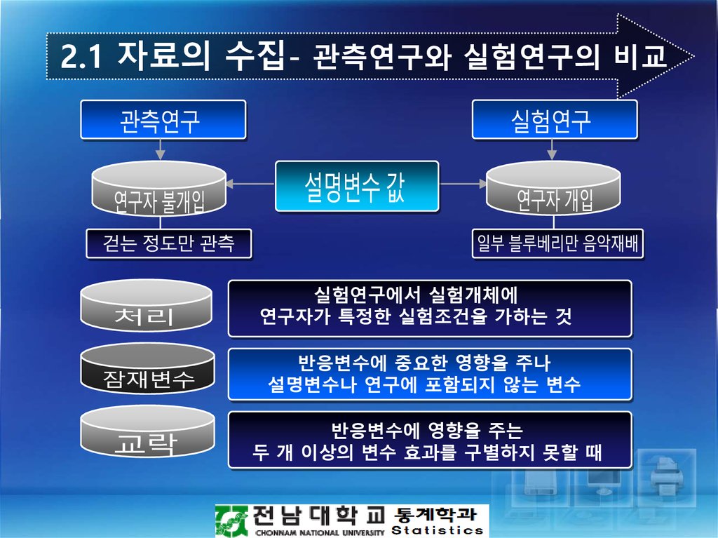 2.1 자료의 수집- 관측연구와 실험연구의 비교실험연구에서 실험개체에