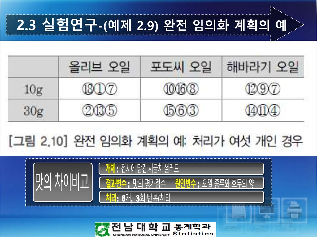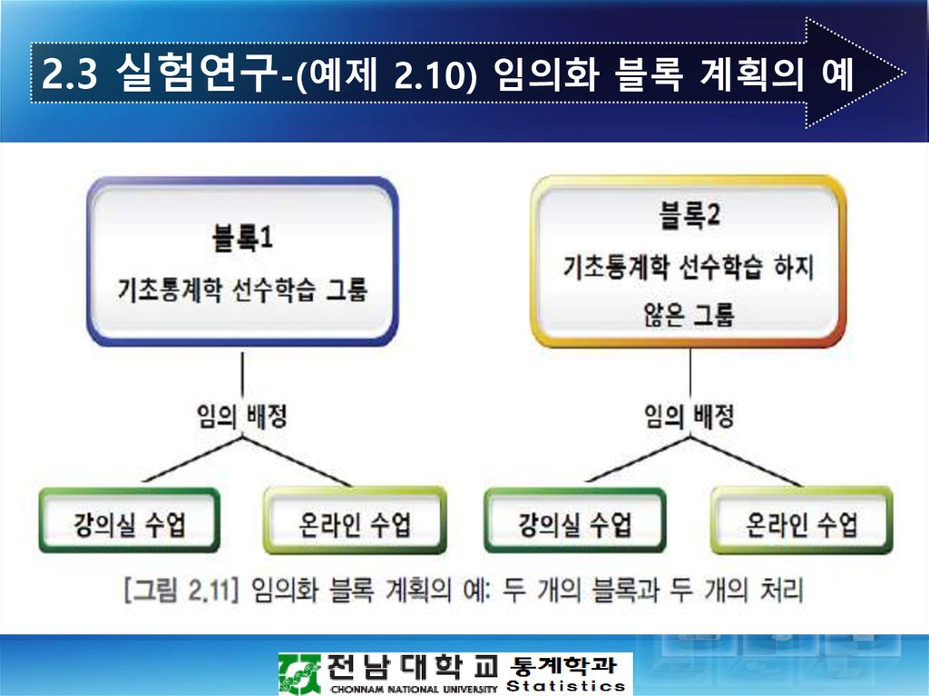 2.3 실험연구-(예제 2.10) 임의화 블록 계획의 예21.