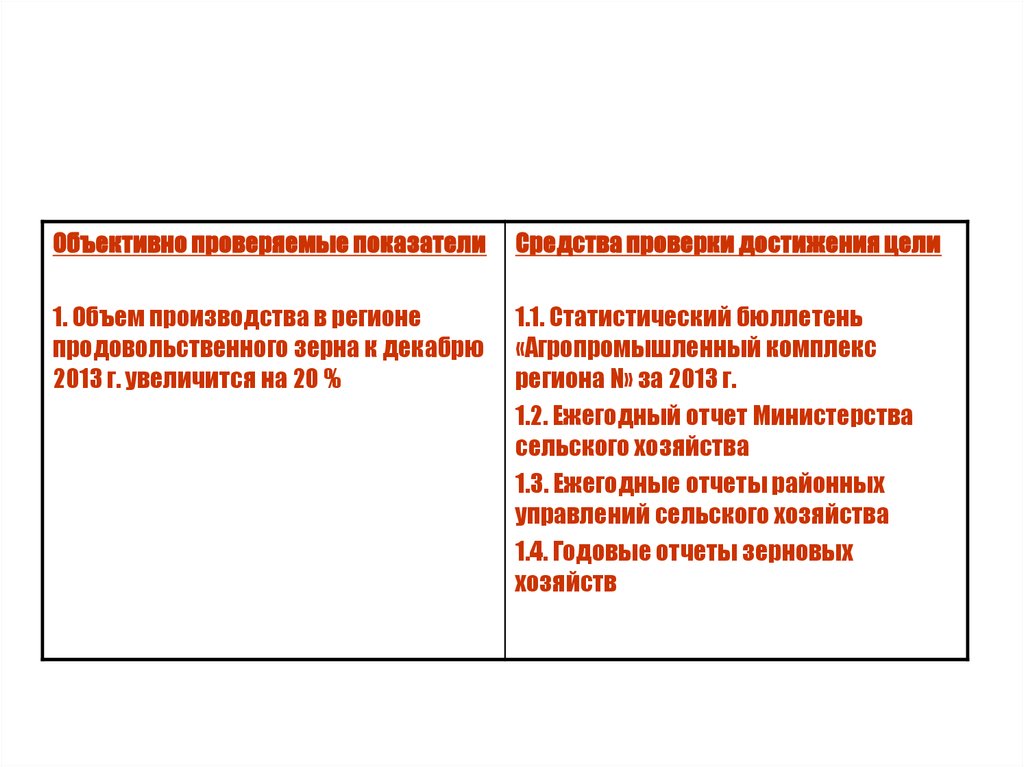 4. Пример: проект внедрения новой технологии производства продовольственного зерна в регионе 1. Определите показатель – зерновые