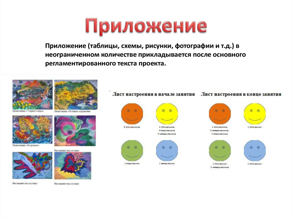 Приложение (таблицы, схемы, рисунки, фотографии и т.д.) внеограниченном количестве прикладывается после основного