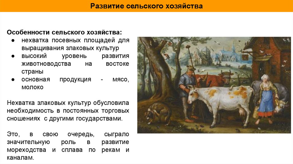 Развитие сельского хозяйстваОсобенности сельского хозяйства:
