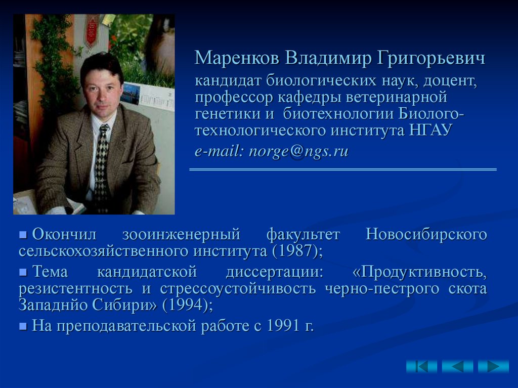Маренков Владимир Григорьевичкандидат биологических наук, доцент,