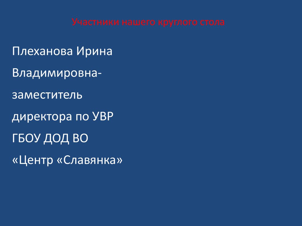 ГБОУ ДОД ВО «Центр «Славянка»Областной круглый стол