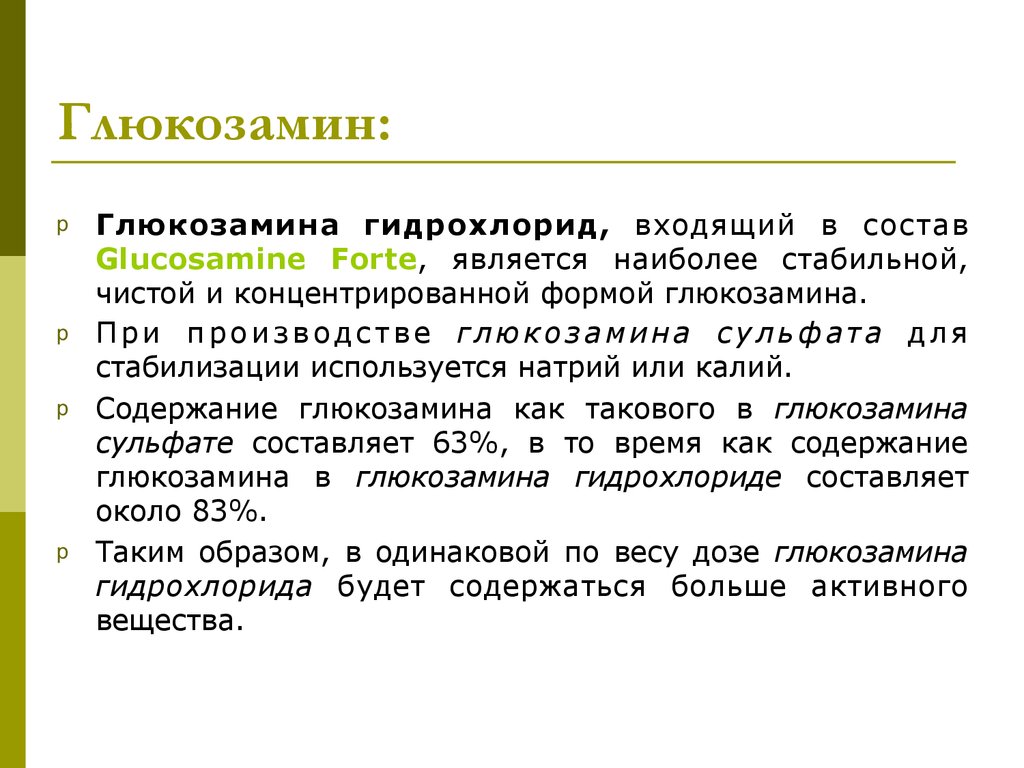 Таким образом, в одинаковой по весу дозе глюкозамина