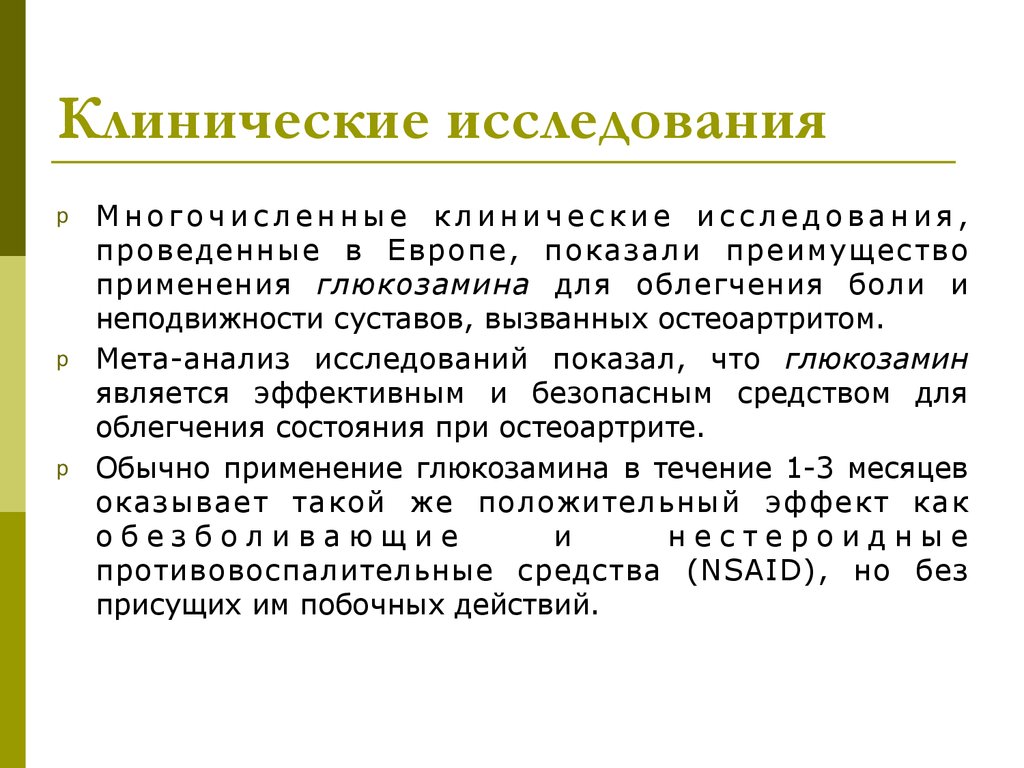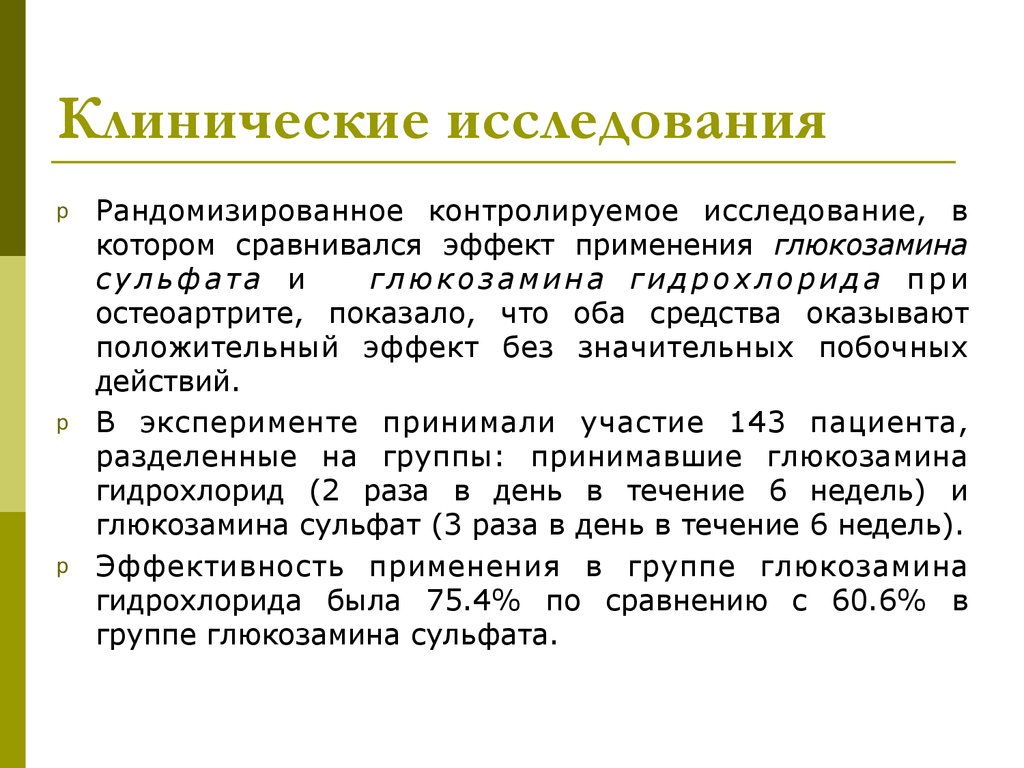 глюкозамина сульфат (3 раза в день в течение 6 недель).