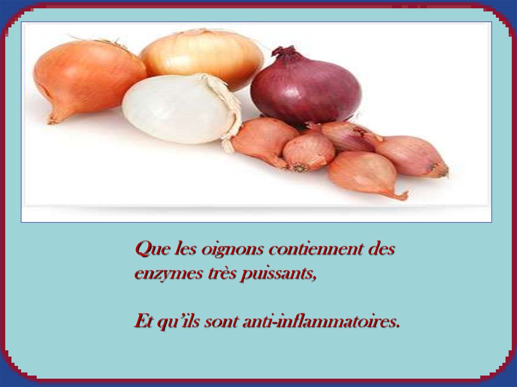 Que les oignons contiennent desenzymes très puissants,