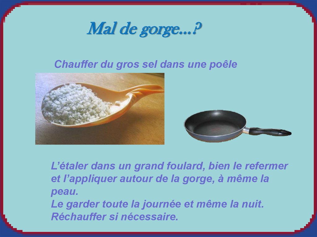 Mal de gorge…?Chauffer du gros sel dans une poêle