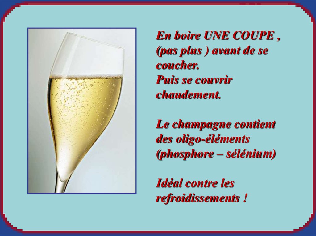 En boire UNE COUPE ,(pas plus ) avant de se