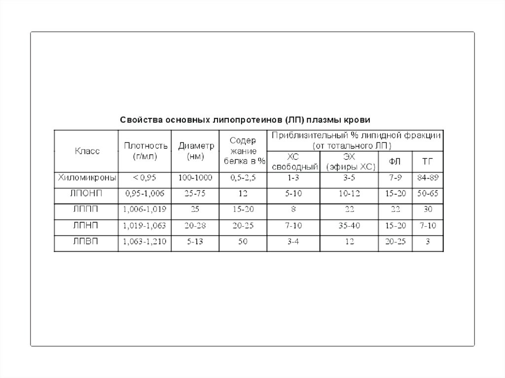 Свойства основных липопротеинов (ЛП) плазмы крови