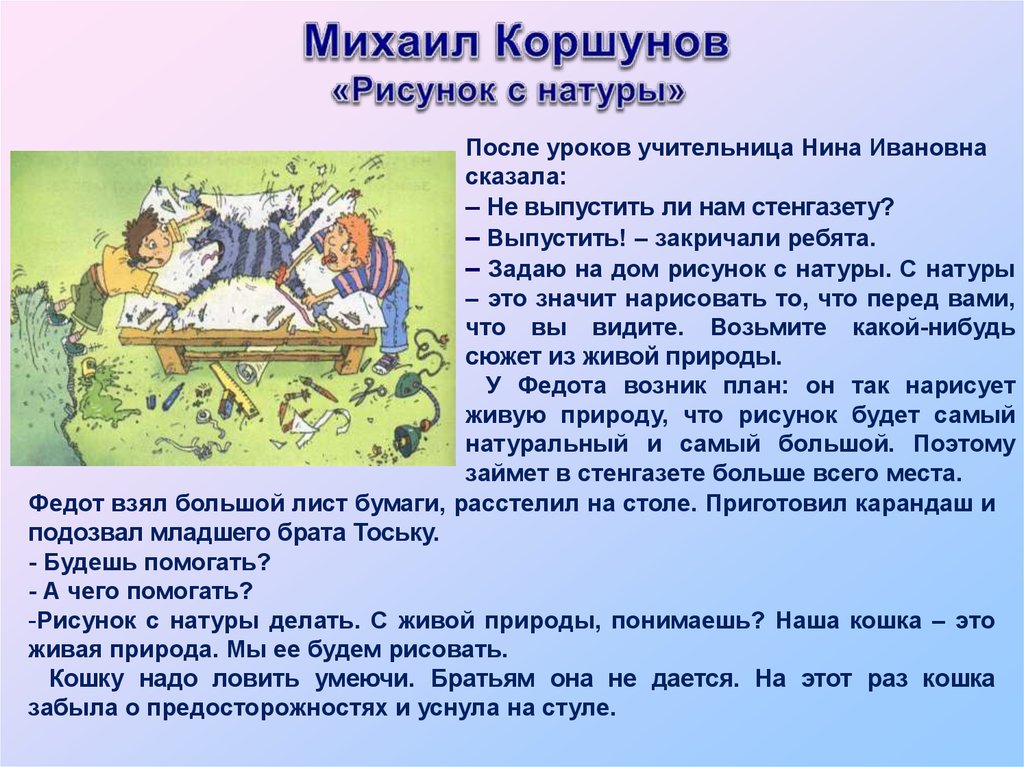 -Рисунок с натуры делать. С живой природы, понимаешь? Наша кошка – это