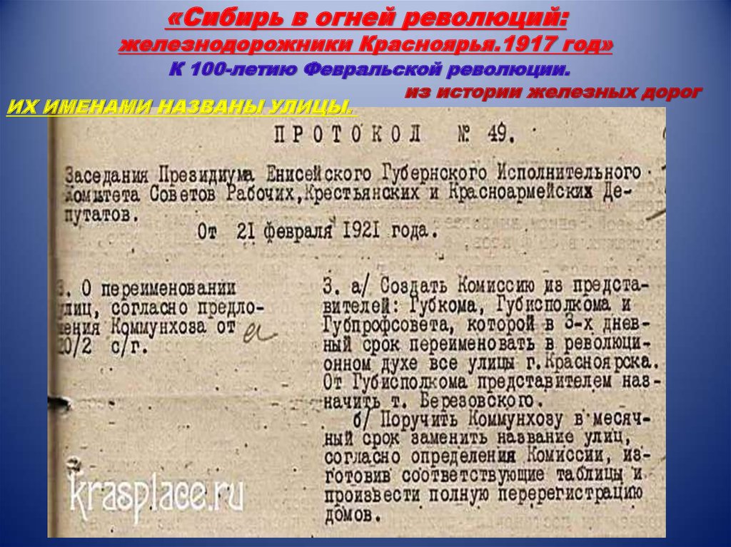 «Сибирь в огней революций:железнодорожники Красноярья.1917 год»