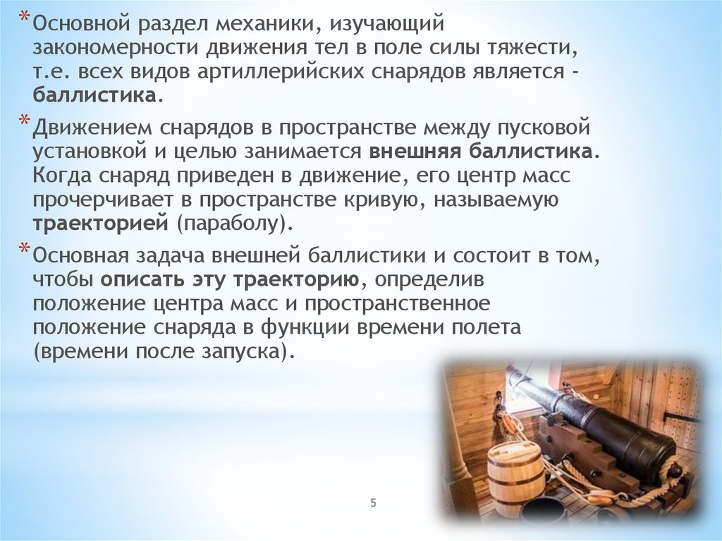 т.е. всех видов артиллерийских снарядов является баллистика.