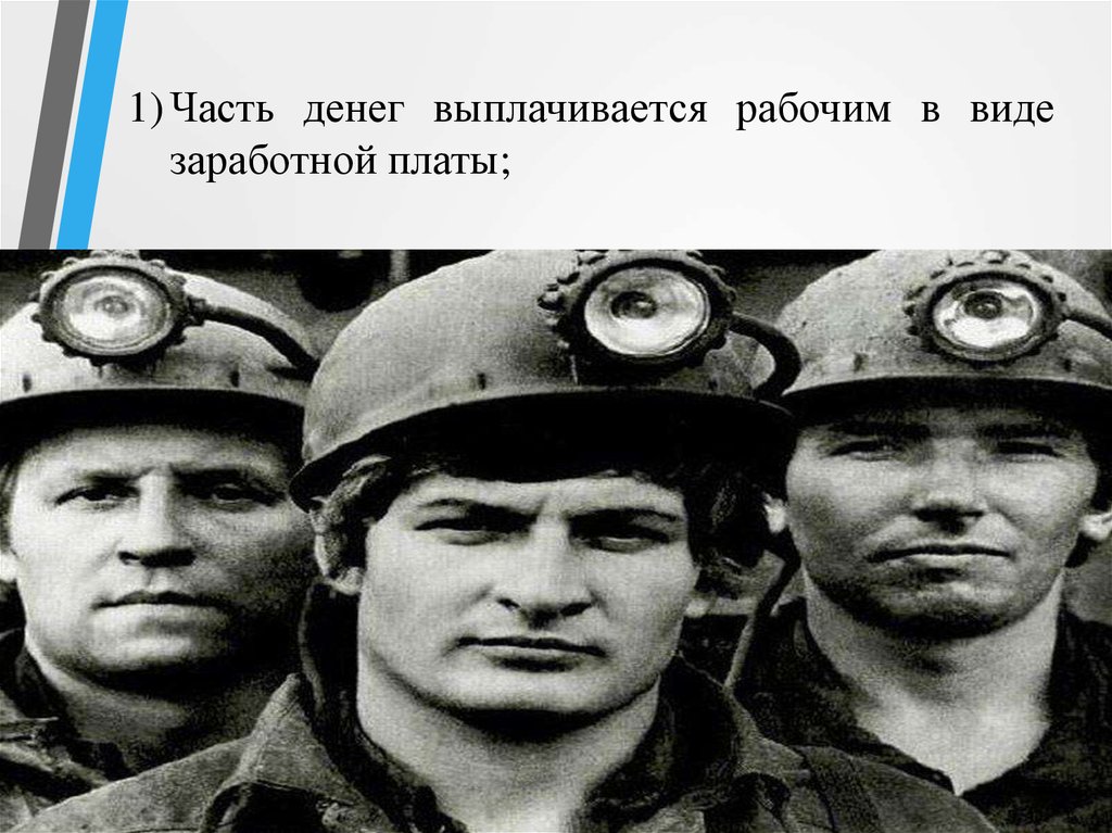 1) Часть денег выплачивается рабочим в видезаработной платы;