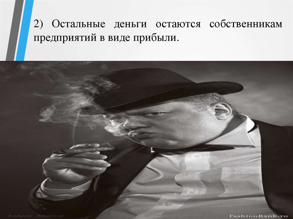 2) Остальные деньги остаются собственникампредприятий в виде прибыли.