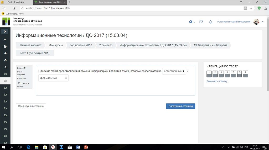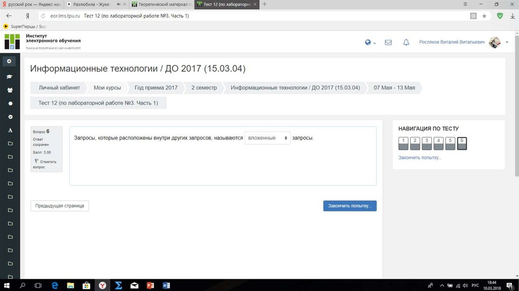 Результат теста № 6Баллы: