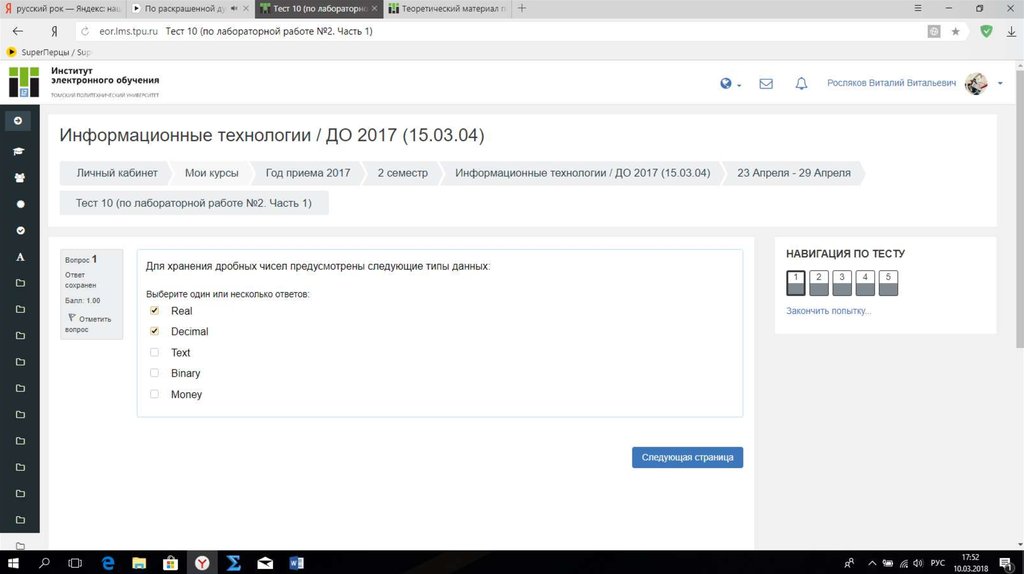 Результат теста № 10Баллы: